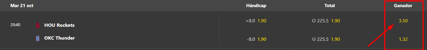 Si el Handicap es positivo, significa que tu selección empieza ganando por esos puntos. Un hándicap de +15.5 permite que una apuesta sea ganadora incluso con el equipo perdiendo por hasta 14 puntos.